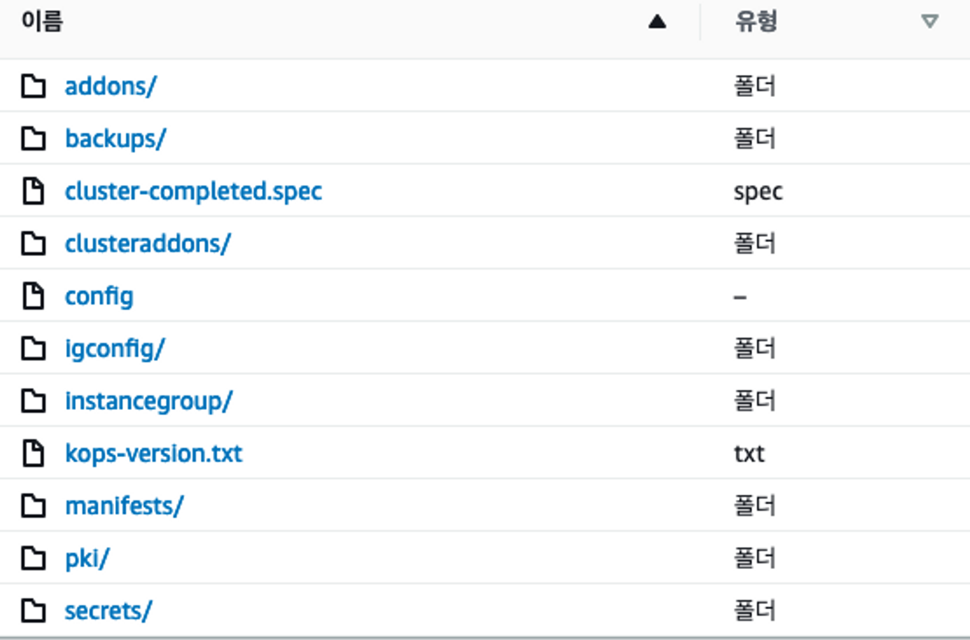 실제로 설치하면 아래와 같이 S3에 폴더가 생성됩니다.