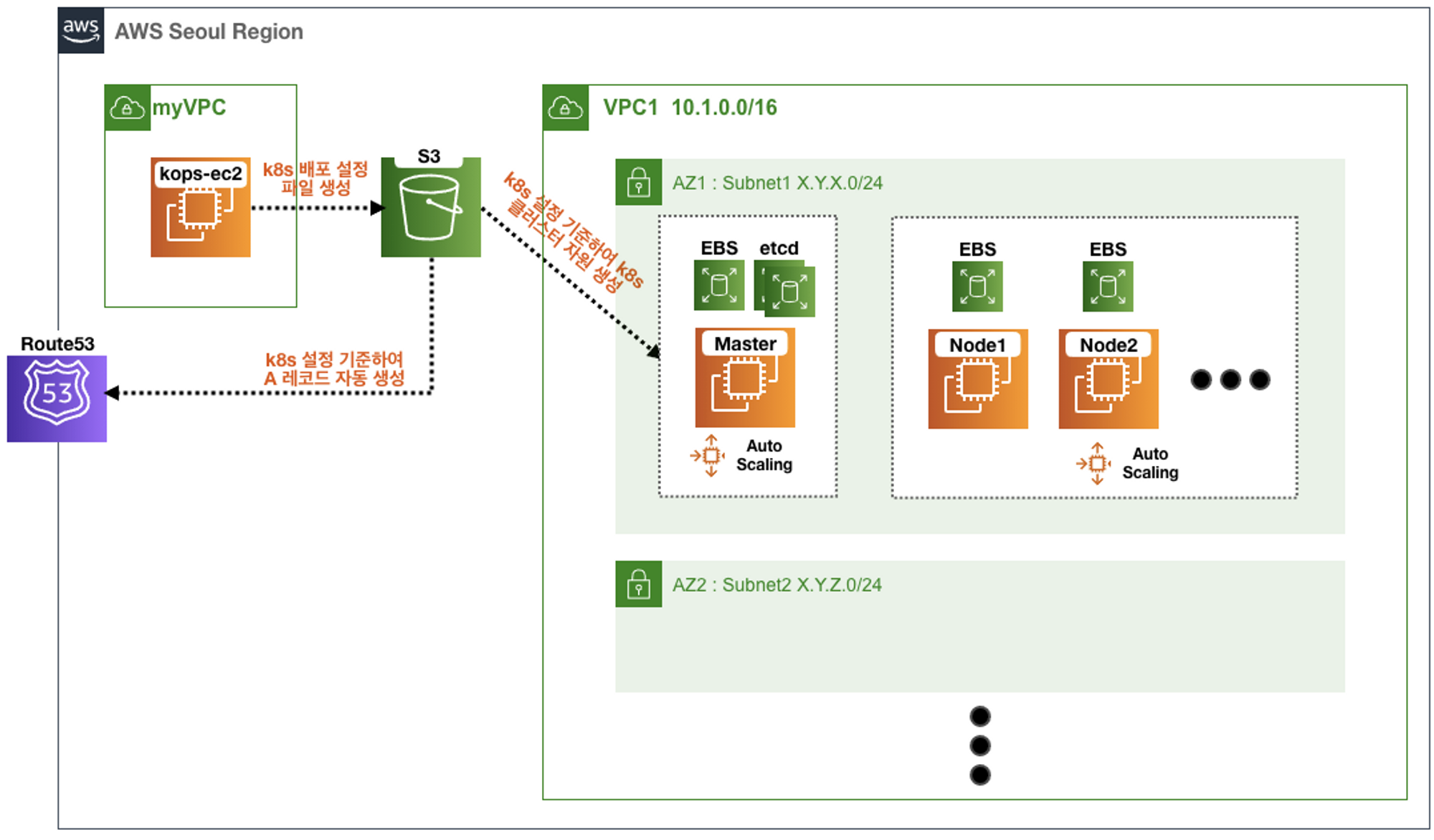 kops(Kubernetes Operation)는 쿠버네티스 생성 및 관리를 쉽게 하도록 도와주는 오픈소스 툴 입니다. 클러스터를 손쉽게 CLI 명령어를 통해 생성, 관리, 업그레이드 및 삭제를 할 수 있도록 지원합니다.