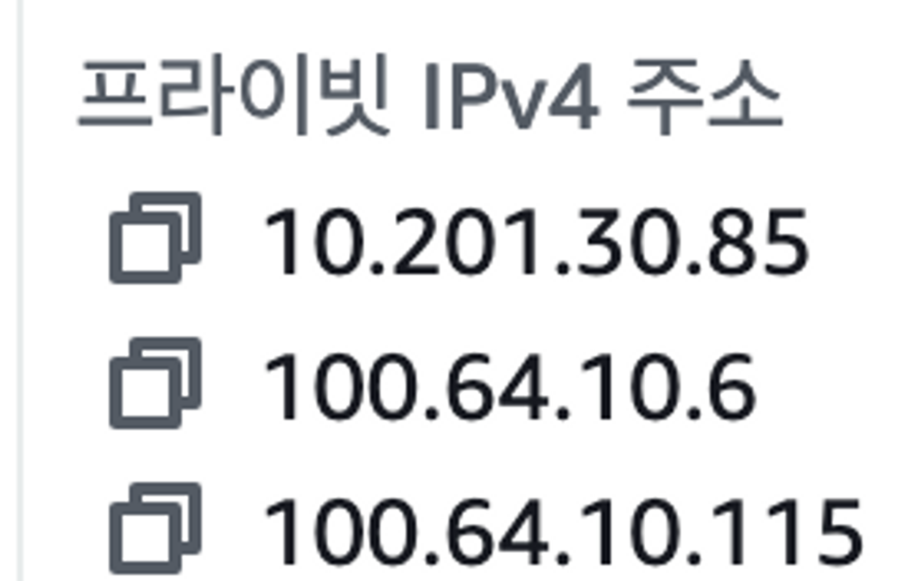 위처럼 10.201.0.0/16 대역이 아닌 100.64.0.0/16 대역이 생성되었습니다.