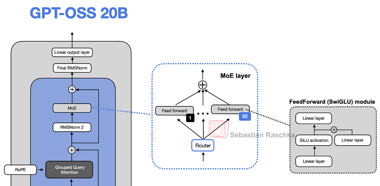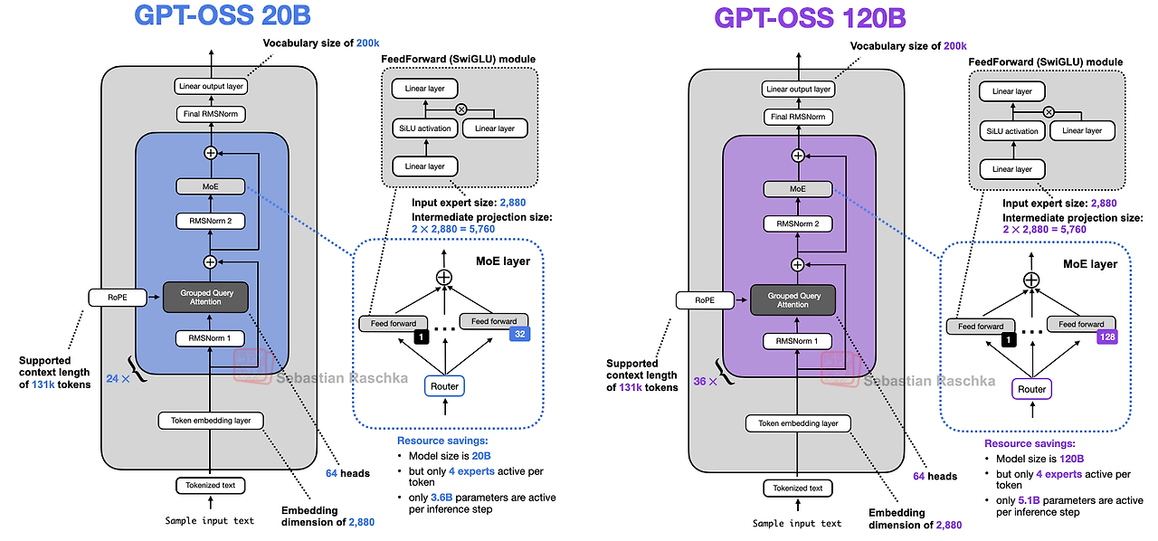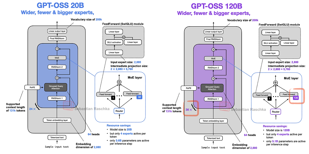 저는 지난 며칠 동안 코드와 기술 보고서를 읽으며 가장 흥미로운 세부 사항을 요약했습니다. (며칠 후 OpenAI는 GPT-5도 발표했는데, 이 글의 마지막 부분에서 gpt-oss 모델의 맥락에서 간략히 설명하겠습니다.)
