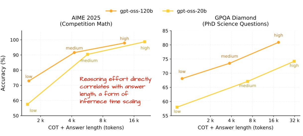이전 섹션에서 언급된 대로, gpt-oss 모델은 추론 모델입니다. 그러나 특히 흥미로운 점은 사용자가 추론 시간 조정 기능을 통해 추론의 정도를 쉽게 제어할 수 있도록 훈련되었다는 점입니다.