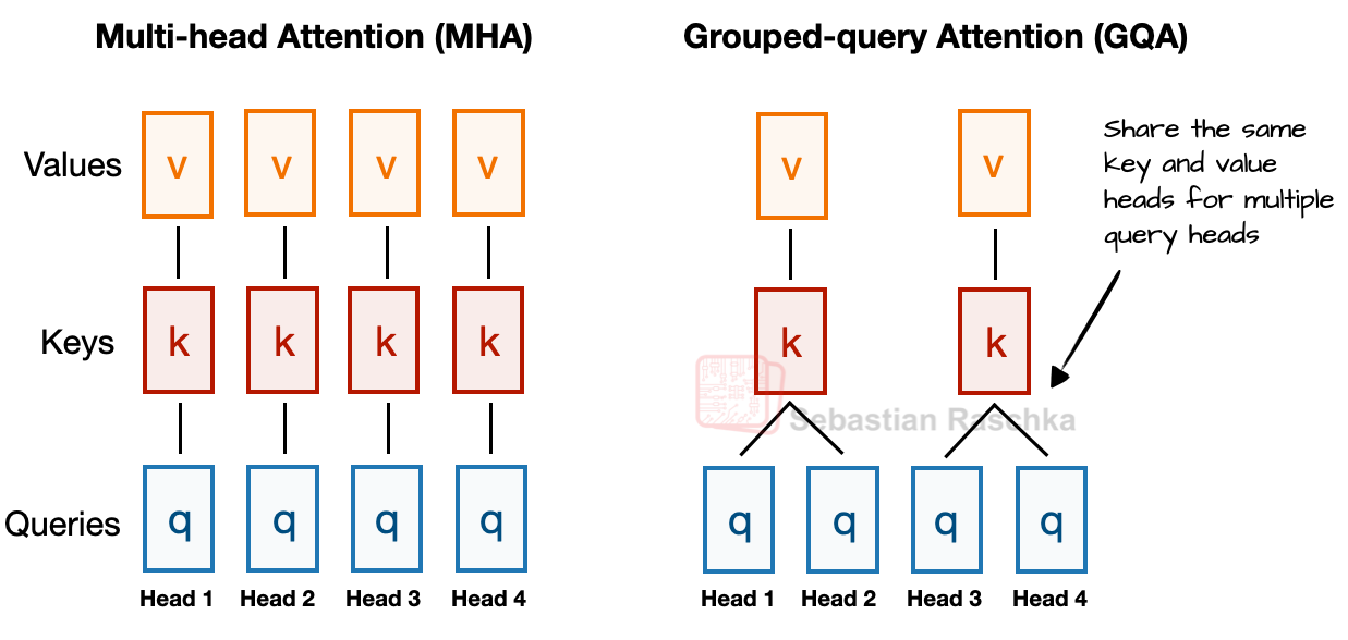 이전 글에서 언급했듯이, 최근 몇 년 동안 그룹화된 쿼리 주의(GQA)가 멀티 헤드 주의(MHA)를 대체하는 컴퓨팅 및 매개변수 효율성이 더 높은 대안으로 부상하고 있습니다.