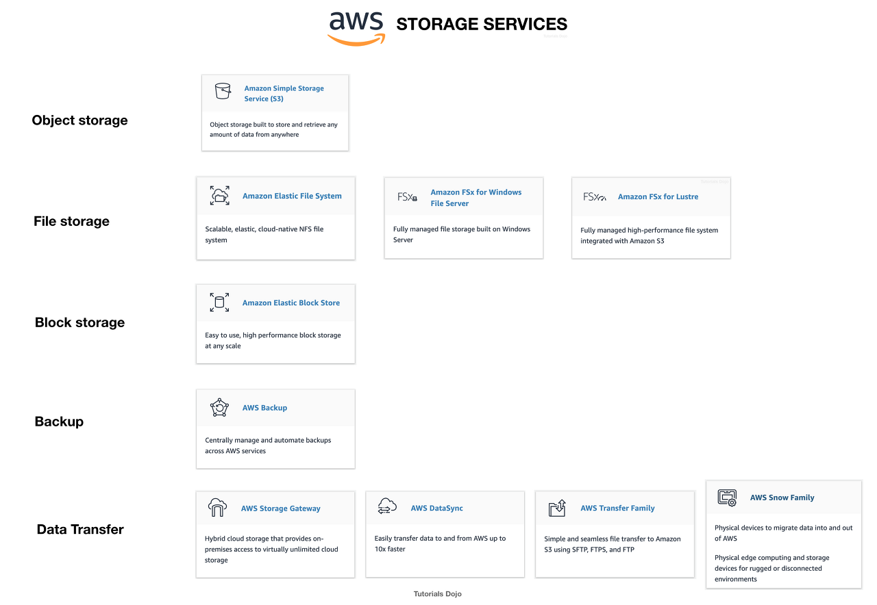 Amazon S3는 업계 최고의 확장 성, 데이터 가용성, 보안 및 성능을 제공하는 객체 스토리지 서비스입니다. S3는 다양한 사용 사례 (자주 액세스하는 데이터, 자주 액세스하지 않는 데이터, 거의 액세스하지 않는 데이터)에 대해 서로 다른 스토리지 계층을 제공합니다.