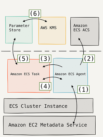 Amazon ECS를 사용하면 민감한 데이터를 AWS Secrets Manager 암호 또는 AWS Systems Manager Parameter Store 파라미터에 저장 한 다음 컨테이너 정의에서 참조하여 민감한 데이터를 컨테이너에 주입 할 수 있습니다. 이 기능은 EC2 및 Fargate 시작 유형을 모두 사용하는 작업에서 지원됩니다.