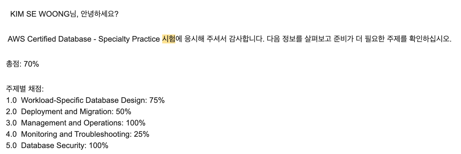 생각해보면 Pro 시험 준비하면서 토나오게 공부했던것들이 많아 도움이 많이 되었다.(생각해보면 SAA 공부하고 바로 DBS 공부후 Pro 보았으면 좋을것 같은 느낌)