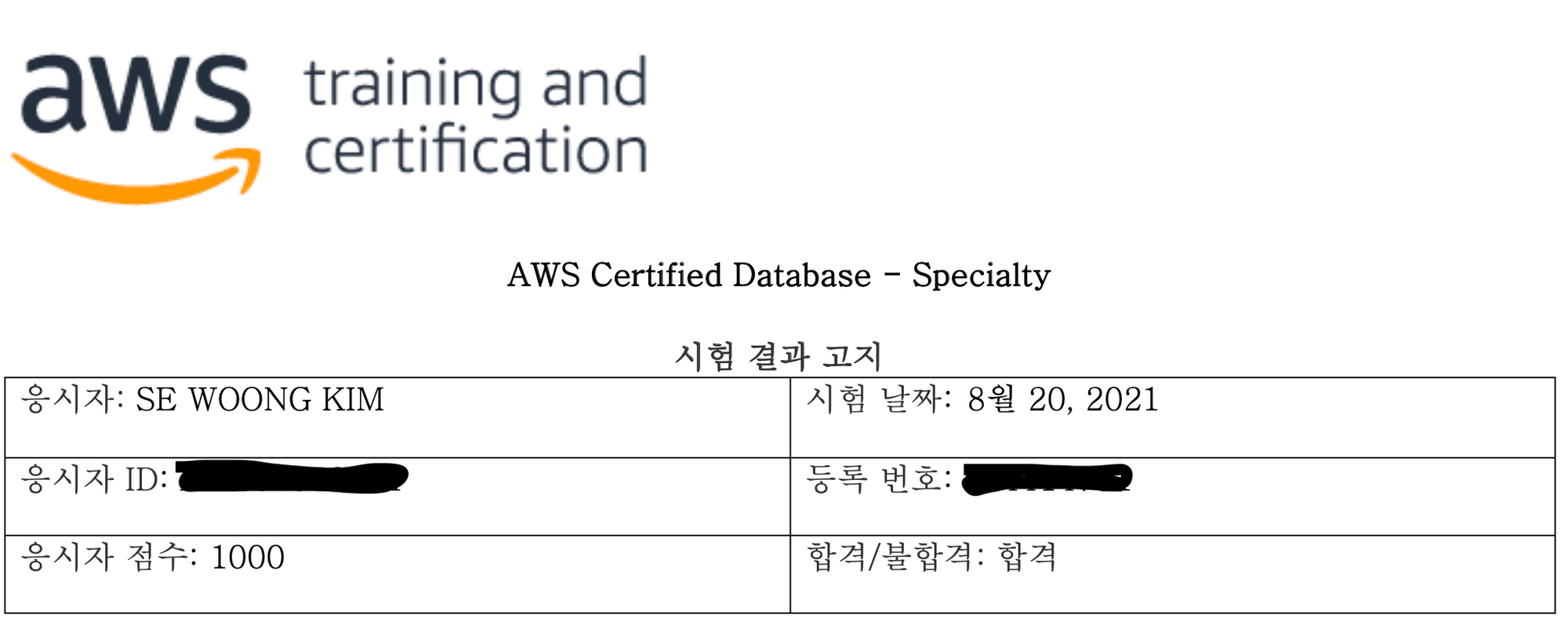 2021-06-22일 Solutions Architect Professional 시험에 합격후 약 두달여간 AWS Database Specialty 응시를 위해 공부하기 시작했다