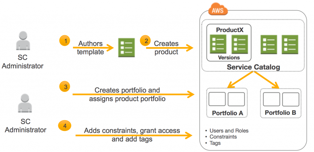 그리고 AWS Catalog라는게 매우 생소할텐데 이 서비스는 특정 그룹, 또는 사용자에게 미리 사용할 수 있는 서비스나 인스턴스 타입등을 정의하여 규정을 지키게끔 만드는 서비스이다.