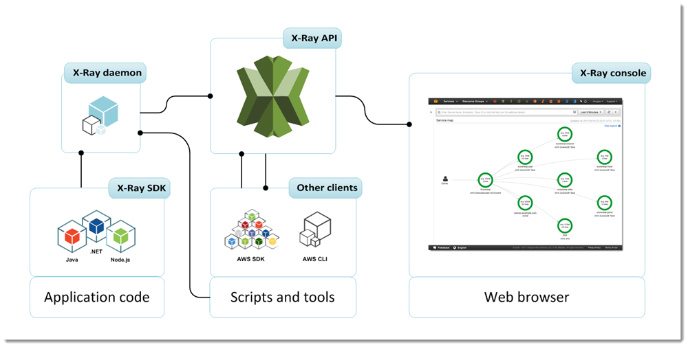 위처럼 SDK로 설치되어 Daemon으로 돌게 되며 EB에서는 SDK로 설치된 X-Ray데몬을 EB콘솔에서 활성화 시킬수 있다.
