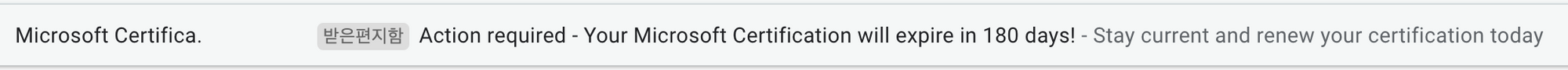 참고로 메일이나 MS learn의 인증사이트를 가서 보면 알겠지만 6개월 이내에 갱신을 하지 않으면 자격증을 다시 취득해야한다. 그러니 메일 무시하지 말고 꼭 갱신을 하자!! 생각보다 시간도 얼마 안 걸리고 시험 난이도 자체도 낮으며 범위도 적다.