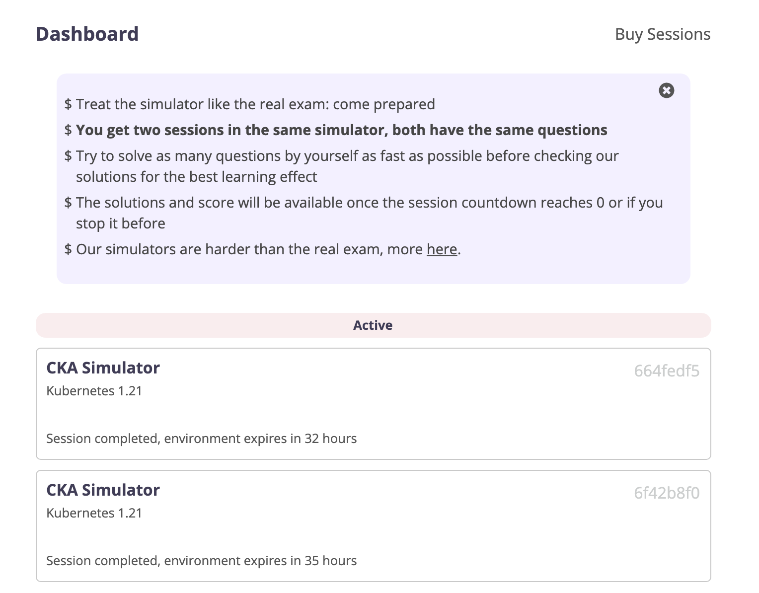 시험을 예약하면 Killer.sh의 테스트 모의고사를 2벌 제공해준다. 이게 모의고사 풀기전 문구를 꼭 보고 풀기 바란다. 안보고 풀었다가 시간 대비 점수보고 대 환장 하며 난 쓰레기야 라고 좌절할 수도 있다.