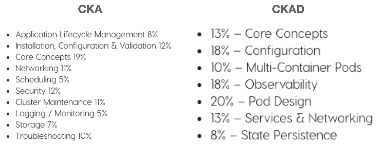 CKA는 거시적으로 운영 관점에 있다면 CKAD는 정말 개발에 필요한 요소를 딥 다이브 한 느낌이다. 그렇기에 자신이 DevOps나 개발 포지션이다! 라면 CKAD를 운영, 인프라, 네트워크 담당이다 라면 CKA를 추천하고싶다.