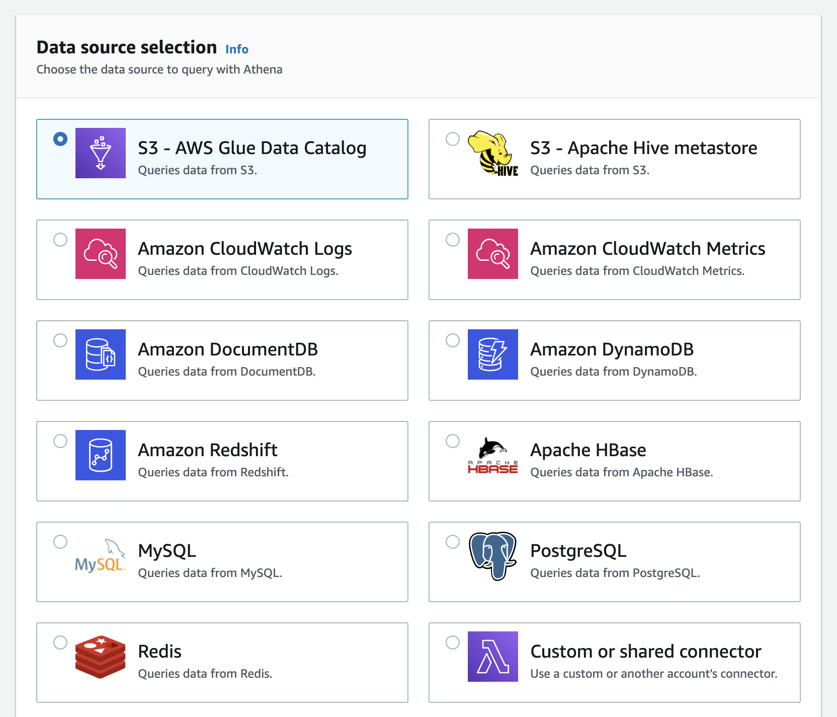 Default Data Store인 AwsDataCatalog는 Glue를 사용한다.