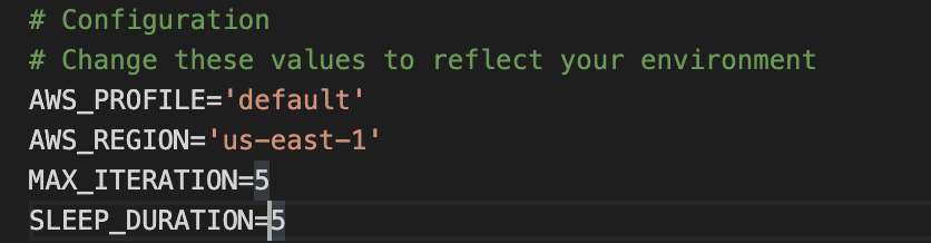 - MAX_ITERATION – 이 스크립트가 환경의 전원이 성공적으로 켜졌는지 확인하는 횟수입니다.