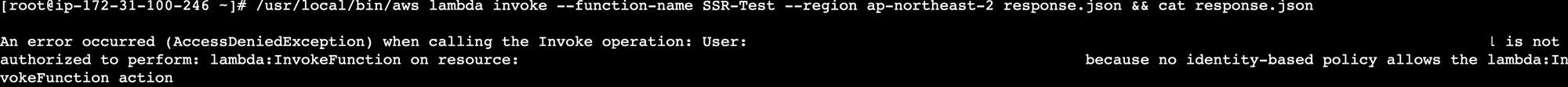 테스트 할겸 EC2하나를 생성해 CLI로 Invoke를 시도해 보았다. 당연히 실패다.