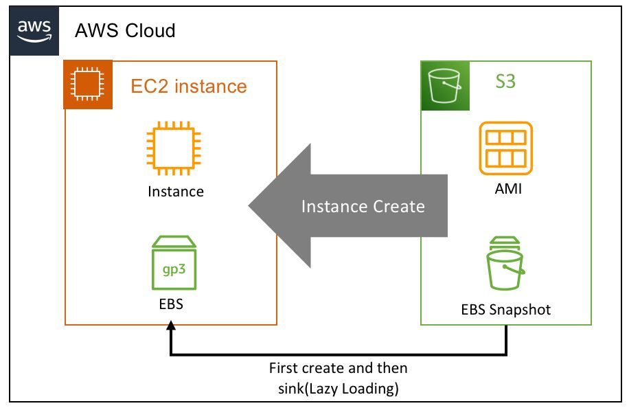 우선 만들고 데이터를 가져올때 S3와 통신하여 Lazy loading되어 파일을 찾게된다. 이것 때문에 초기 EBS 생성시 Init Latency가 발생한다. 왜 Layency를 감수해서라도 빠르게 Provisioning이 되는가?