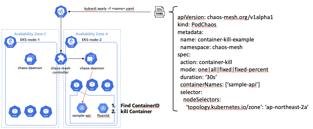 정상인 Pod의 Image를 Chaos mesh에서 만든 비정상 이미지로 변경하여 고의적으로 Pod를 Fail로 처리합니다